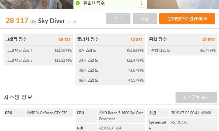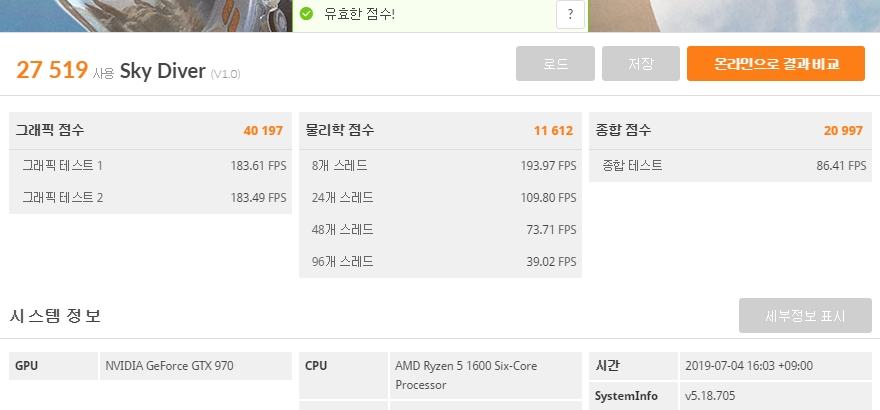 결론적으로 아무 변화가 없다....-_-;; 오차내 수준이다. 전부 10단위차이들...다만 스카이다이버 3번측정중 피지컬점수 쓰레드중하나가 프레임측정치가 좀 차이가 난다 1903경운 3번다 비슷함... 종합점수는 비슷하지만 이거말곤 차이가 없다.