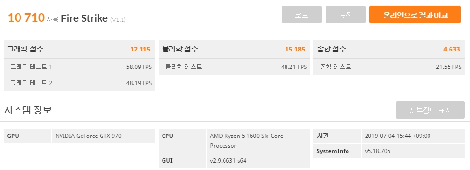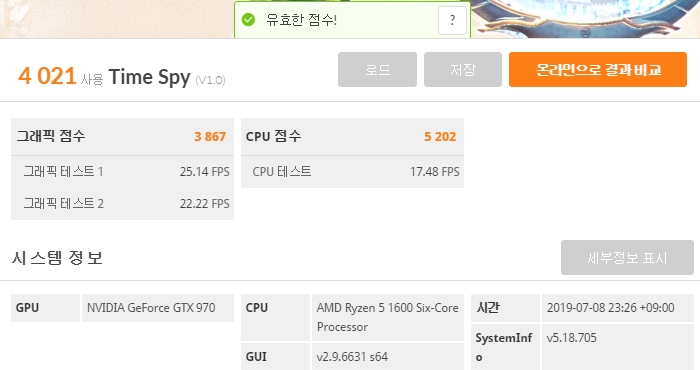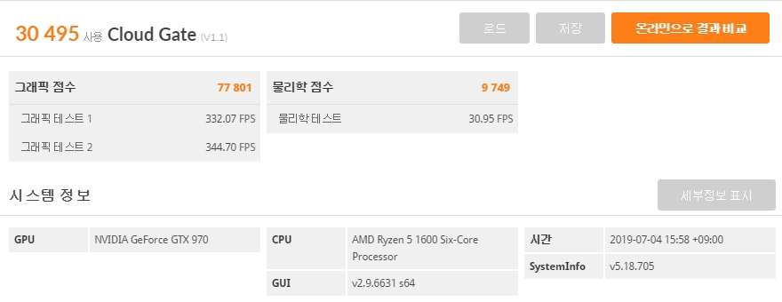 아무래도 970이라서? 그래픽카드 성능이 좋을수록 차이가 유의미해진다고 들은거같은데 970은 그정도는 안되는건지 1903버전업이 별의미가 없는건지.... 라이젠5 1600은 아무의미가 없는건지...