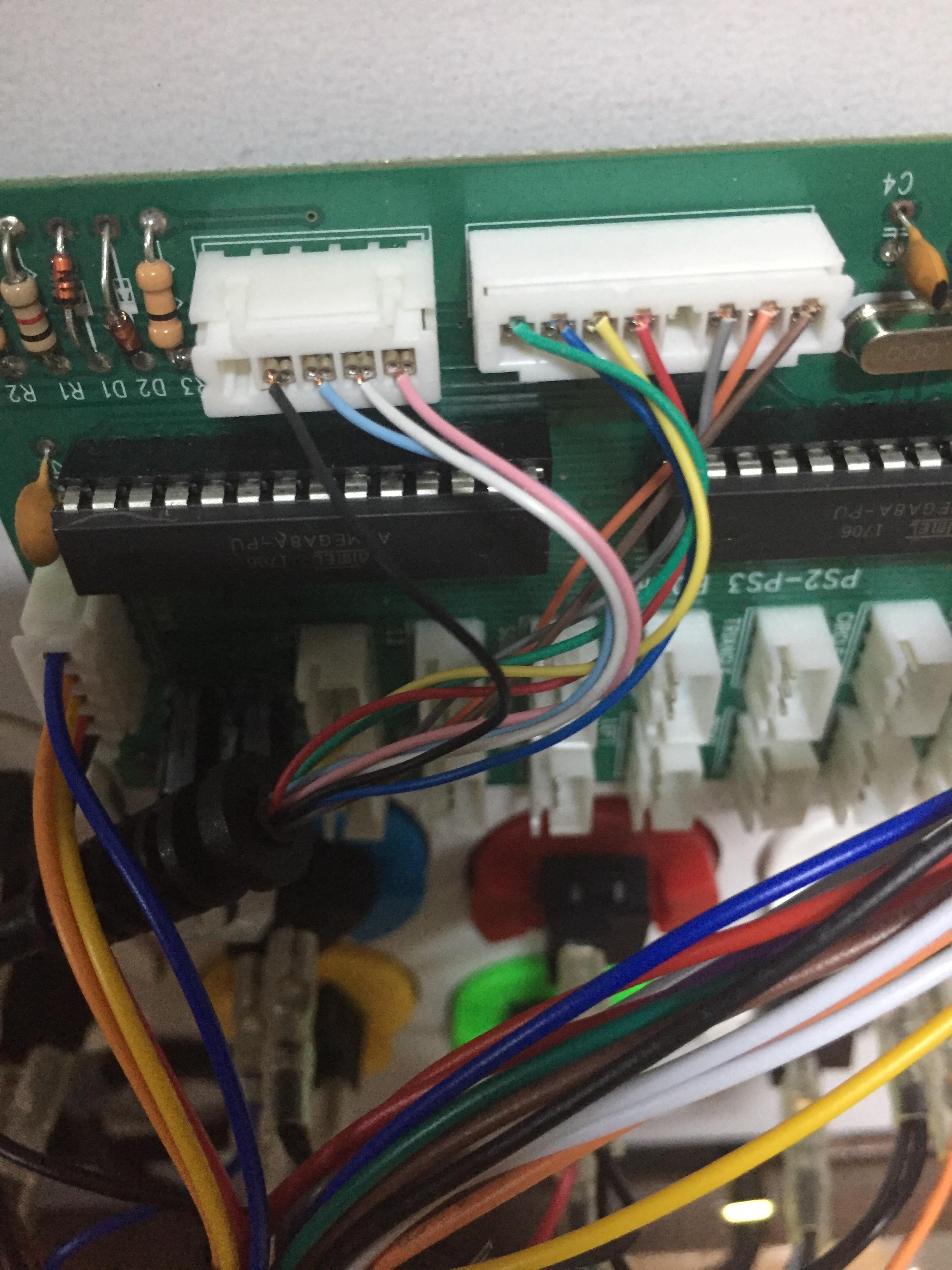 버튼부나 스틱부 전선과 커넥터는 대조해보니 거의 같았기 때문에 5핀, 12핀 와퍼커넥터를 제로파이 PCB에 납땜을 하면 끝. 다만 버튼부 커넥터 경우는 기존 PCB 와 제로파이 PCB랑 X(크로스) 버튼, O(써클) 버튼 선위치가 다르므로 그것만 바꿔 달았다. 커넥터의 선을 빼는일은 상당히 귀찮은 일이기 때문에 버튼쪽 선을 바꿔치기 하는쪽으로...