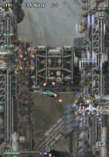 만약 어떤 이유로 파괴를 못시켰다면 소적탄이 나올때쯤에 좌측이나 우측 구석 화면 중간쯤에 있다가 발사되면 조금씩 내려오다가 백탄이 발동되면 U자 형태로 조금씩 피합니다. 여튼 중형기를 파괴시키면 송사리기체무리들이 나옵니다.