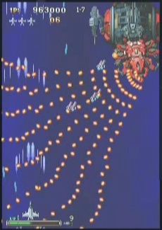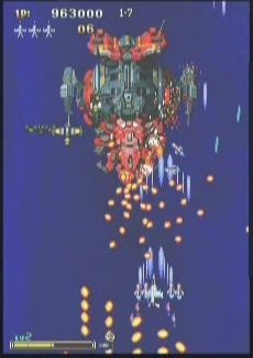아몬드탄이 바깥쪽에서 안쪽으로 서서히 모아져가며 쏘므로 소적탄을 피하면서 안쪽으로 들어가서 코어를 파괴하면 된다. 보스에 지나치게 대미지를 주면 코어를 열 타이밍에 다시 옵션을 내뱉으므로 이때는 포기하고 집중공격해서 파괴한다. 보통 이경우는 중앙에서 고정하며 보스입에서 대적탄 2웨이를 날리고 아몬드탄을 쏘아댄다.