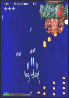 그후 연속조준 줄줄이 8웨이소적탄을 쏜다. 짝수탄이래서 맞지않지만 한쪽이 약간 아슬할 정도의 조준이고 중간에 잔챙이들이 공격할수도 있기 때문에 화면 중하단즈음에서 있다가 탄을 쏘면 조금씩 아래로 내려오다가 좌나 우측으로 조금씩 이동해준다. 탄을 다 쏜 후에는 다시 이동하면서 아몬드탄을 일직선으로 날린다. 앞서 말한 방법으로 회피해준다.