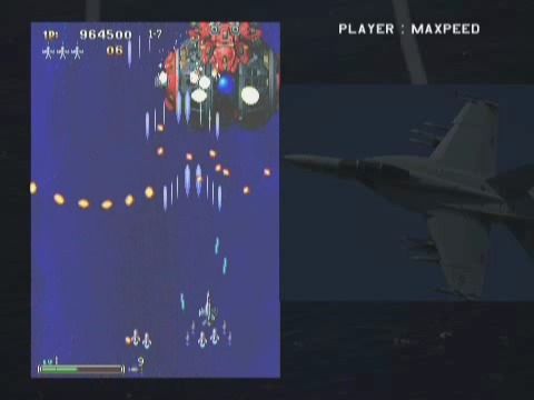 조준탄을 3번 날리면서 위로 이동하는데 최상단까지 이동을 마치면 2개의 옵션을 좌우로 내뱉는다. (그리고 마지막으로 9웨이탄을 한번 더 발사한다.) 이 때 얼른 좌측에 가서 수퍼샷을 시전하여 좌측 옵션을 제거하고 우측도 같은방법으로 제거한다. 옵션은 조준백탄을 쏘니 그점은 유의하고 우측 옵션제거는 두가지인데 아까 말한 수퍼샷을 쏘거나 근접해서(근접사격시에 서브웨폰공격이 되게할것) 속공파괴 하는 방법이 있다. 옵션은 일정방향까지 이동한 후에 위쪽으로 방향전환을 하고 올라갈때부터 탄을 쏘므로 그전까지는 붙어서 공격해도 유효하다.