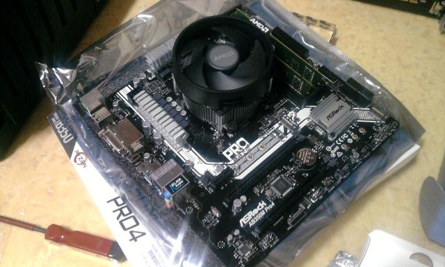 CPU와 쿨러, 램 장착하고 난후 사진 누드테스트를 해야하지만 귀찮아서 그냥 케이스에 장착하고 구동했다.