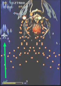 빽빽한 소적탄 다발을 공격한다. 일단 소적탄다발 발원지의 가운데 중앙을 맞추면 탄에 맞지 않지만 약간의 컨트롤의 정밀함이 필요하다. 그외에는 일부 화면상단이 탄에 가지 않는곳이므로 이곳도 한정적으로 안전한지대이기도 하다.