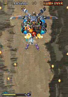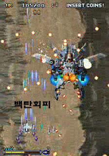 게임난이도 셋팅에 따라좀 다르나 Normal 난이도 일경우에 해당 합니다. 1-2 이후는 내구력이 좀더 강하고 대모적탄이 좀더 빠르게 쏘므로 너무 근접하지 말고 밑으로 내려와 잠시 대모적탄을 피하면서 샷을 쏘면 1차형태가 파괴 됩니다.