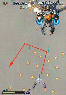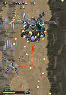 왼쪽파츠 파괴되고 그전,그후에 중앙에서 쏘는 백탄이 지나간후에 대모적탄 쏘는 포대가 열릴때 즈음에 오른쪽 파츠와 몸통사이로 이동해서 샷을 쏩니다. 대모적탄은 보스와 수직일치점에서 한기체정도 부근이면 대모적탄에 맞지 않는 그위치를 말합니다. 이위치면 호넷샷은 파워가 있는부분이 동체와 파츠를 쏘게 됩니다. 동체가 훨씬 내구력이 강하니까 이정도로만 해도 파츠는 그냥 파괴됩니다. 옵션이 쏘는 단발샷도 어느정도 유효하니까요.