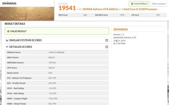 3dmark 11 도 있지만 이전에 시스템에서 06버전을 벤치해놔서 06버전 벤치마크로 측정했다.