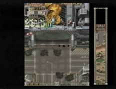 왼쪽에 중형기가 나오기전까지 오른쪽에도 계속해서 소형탱크가 나오므로 일단 샷으로 처리후에 중형전투기가 나올타이밍에 미리 레이져를 조사 합니다. 왼쪽 건물부분과 오른쪽건물 부분을 이동하면서 샷과 레이져를 사용해서 파괴 합니다.
