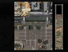 다시 중앙으로 이동후에 여기서 부터 샷 조절을 하면서 다시 좌측으로 이동한후 지상별(대) 및 벌아이템을 취득하고 다시 우측으로 이동 합니다. 우측에 마지막 건물 입구에 소형 전차가 계속 나오고 위에는 헬기들이 계속 내려 옵니다. 샷 조절을 하면서 격파하되 맨 윗상단 건물이 드러날때 쯤에 마지막 벌위치부분에 레이져를 조사해서 일단 벌 아이템을 불러 냅니다.