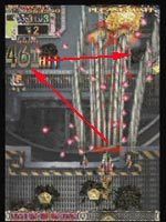 다음엔 조준 다웨이 적탄인데 첫위치가 좌측구석이며 좋고 약간 우측으로 비낀경우는 좌측구석으로 빠르게 올라간뒤에 유도해서 우로 조금씩 빠지면 됩니다. 이때 천새 조준난사타니 나아오는데 일단 적색다웨이탄만 조금씩 피하다가 청색다 조준난사탄이 다 피할때 쯤에 방향전환을 하면 됩니다.