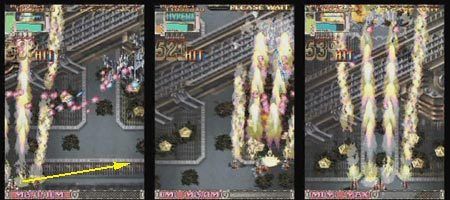 샷으로 전차들을 격파 하다가 오른쪽 린악 포대에 레이져를 조사합니다. 곧 파괴가 되면 당분간 계속 레이져를 조사하면 위쪽 린악포대에 조사되어 콤보가 유지되며 또한 왼쪽 출구에서 계속 탱크가 나옵니다. 또한 바로 위쪽에 쌍천 전투편대가 나오기 때문에 어떻게든 콤보유지는 자연 스럽게 됩니다.