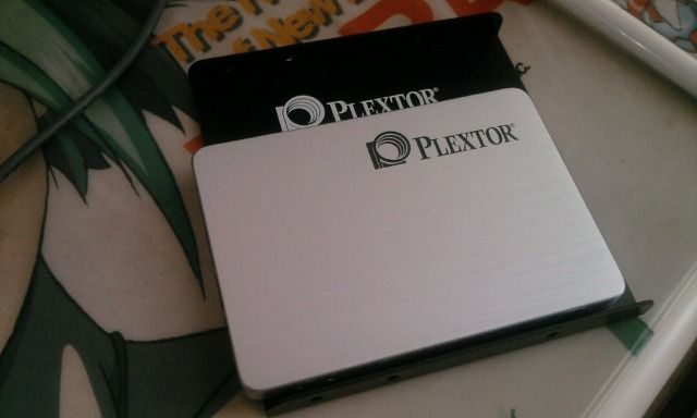 3.5인치 가이드에 장착한 모습. 인텔경우 정중앙에 장착하게 만들어놨는데 플렉스터는 가장자리로 붙여놨다