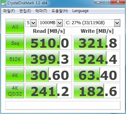 SATA2 방식의 인텔 SSD 의 쓰기속도는 90MB/s 인데 차이를 알수없다는 것자체가 그 증거.